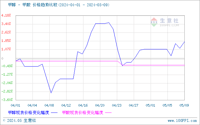 甲酸與上游甲醇價(jià)格對(duì)比圖: